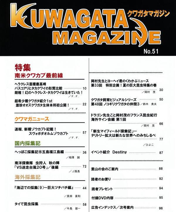 HOME >> 雑誌:本、雑誌、DVD >> クワガタマガジン51号★南米クワカブ最前線
